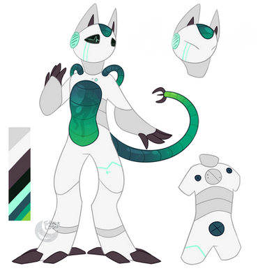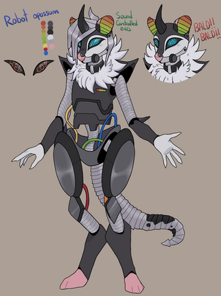 - Sections on his tail has solar panels that come out when he is low on power, his charge level is shown on his chest.