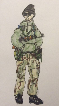 When that was all over, SWIFT caught wind of this man, got ahold of his dossier, and recruited him to their international fighting force. He was assigned to Echo-3, where he immediately made his mark. The Unit leader, Sgt. "Hindsight",had nothing but absolute praise for his skill. "He's got to be one of the best. Nearly perfect accuracy. 5 targets in half a second. Too good.Im rather glad he was assigned to our my unit."