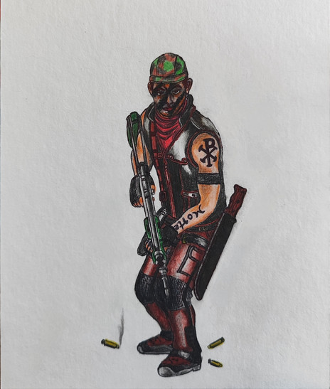 Out of everyone in his unit, he's the only one without any cybernetic implants. Despite this, he has the best accuracy and lowest reaction time of his unit. He does not like cybernetics. He believes that it is wrong, even going as far to say that it is sinful to "plague yourself with machines." He says a "true soldier does not need cybernetic enhancements"