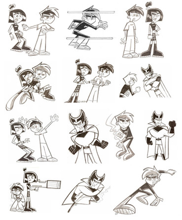 Pencils and colored pencils of Danny Fenton/PhantomMy current art I consider highly influenced by Butch Hartman's cartoons DP and FOP- I love that geometric look