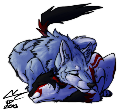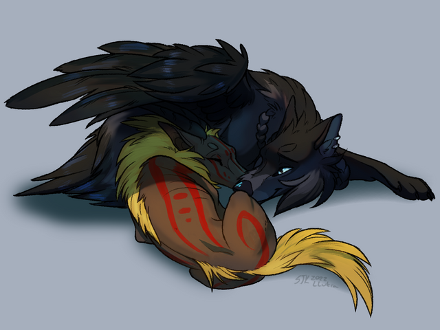 #cuddle #dog #dragon #eyes #feathery #gryphon #oc #sleep #wolf