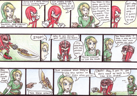 xD I seriously wanted to put lightning in the background of panel 9. AH, and I couldn't stop laughing when I was drawing Knuckles in panel 10. Yes, I had fun. ;3