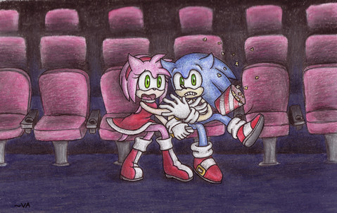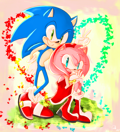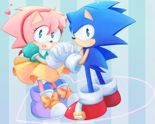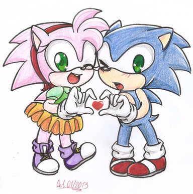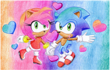 Over the summer while I was at a Disney resort, I decided to doodle a couple Sonamy pictures while my younger brother was working his way through watching every My Little Pony episode.Sooooo yesterday I found the lineart to this picture sitting on my desktop and spontaneously decided to color it.