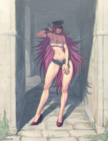 This is really, really good! You've captured her craziness perfectly and the picture is so detailed, both the clothes, weapons and background. Must have taken a loong timeΒ Β