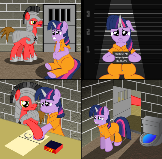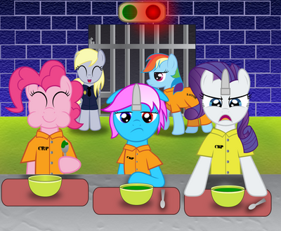 An alternate ending to Suited for for Success where Rarity's design's were so terrible, she was arrested for fashion crimes and was punished with ironically, another fasion crimeOriginal:Inmate Rarity