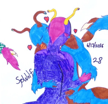 I left this a little while ago to let the whiteout dry & because I was too tired to color it at the time. I hope I can complete it with part of a spaceship off to the left when I can find somebody who's good at drawing machines.Context: Saraphina (shorter, female Andalite) is an engineer & I wanted to draw her actually working. Her husband & commanding officer Thyson missed her & interrupted her work with a hug. I don't draw funny things often & think I pulled it off well. My mom laughed at it. So that makes me feel accomplished.