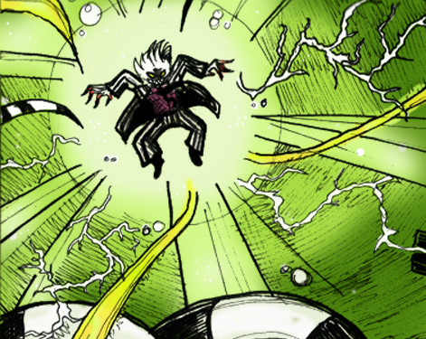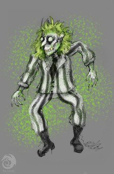 Beetlejuice himself looks fantastic - much more pretty than I remember him . The pose is just right, although his expression could be more angry; consider making his eyes more like slits.