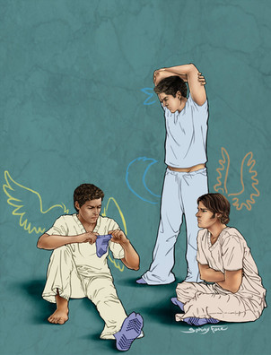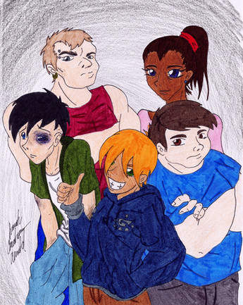 Some things I guess I should mention, Beavis and Butthead are older in this picture. Joeseph, Khan and Bobby are also older but not 18. Trent was supposed to be playing guitar but I got lazy, now he's just glaring at Beavis and Butthead...