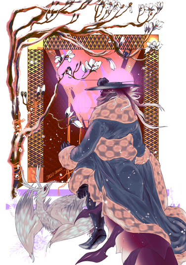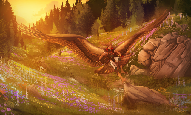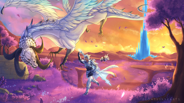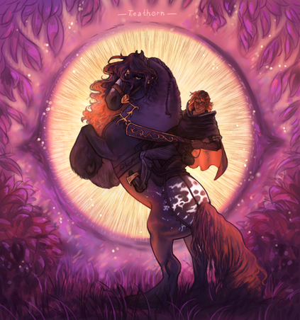 #anthro #beast #characterart #flowers #hound #landscape #monster #mountainscape #oc #originalcharacter #painting #pink #riding #ocsoriginalcharacter