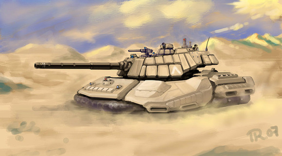 Looks like the Atreides Combat Tank from Dune 2000, except the long cannon barrel it seems.