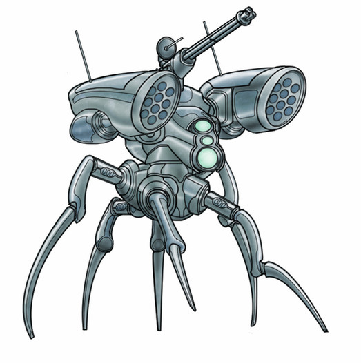 The Hunter Killer class multi legged autonomous weapons platform was disigned to combine heavy armament, thick armor, and battlefeild endurance to make a weapons platform that more than rivals most if not all other units deployed against it. The Hunter Killer is equiped with dual over and under turrets with full rotation. The lower turret is armed with two heavy chainguns, the dorsal turret is equiped with two six tube missle packs and is generaly loaded with a combination of anti armor and high explosive rounds. Being an autonomous weapon platform not only affords the Hunter Killer a much greater battlefeild endurance than most other heavy weapon platforms but allows the Hunter Killer to opperate on a constant basis making it a constant danger for soldiers who require sleep and the like.Related content
