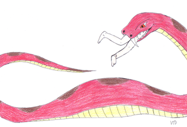 More warm-up work. Very simple two-panel comic about a little anthro rat that wants to explore pythons.(Disclaimer: Ratty fella will be fine--I don't draw or write vore where a living thing goes in, and a living thing does not come out. Nonfatal and generic vore bellies only fer me. :3)