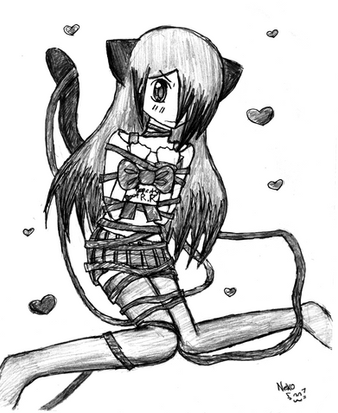 Sereph blushed. Before she could even respond the tape was wrapped around her mouth, closing her inside the cocoon of duct tape. Tobi tied a bow in her hair and laid her down by the tree. He pulled out a camera and took a picture. He grinned, "This is just a little picture to remember this moment, because tonight we're going to have more fun than we ever have before..."