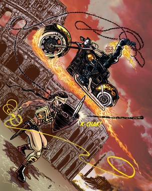 Color commission from my friendWonder Woman vs. Ghost Rider!