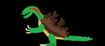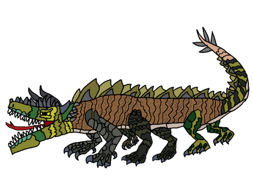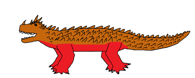 This is Ankillis who is an ankylosaur-like kaiju that appeared after Gigantis was sealed in a mountain. Ankillis attacked and destroyed Osaka Japan however it seemed like he was put down by the JSDF and his supposed remains were taken to Area 51 but he woke back up and attacked Las Vegas and retreating back to the ocean. Ankillis was seemingly killed when an experimental explosive was thrown into his. Ankillis abilities are flame breath and curling into a ball.Height: 50 Meters (when standing)