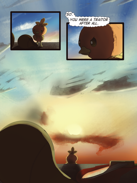 Drawing I made with my comic torchic OC.Lotta orange, brown, and red.