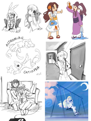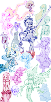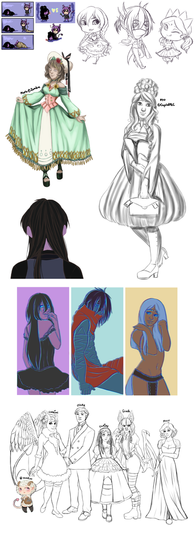 I do draw a lot more girls than boys (ratio is 3 to 19 if I'm not mistaken, wow), I should probably fix that. I think I have about as many male characters as female, though. I just draw them a lot less. I also tend not to give them names even though they're important. For example, there's this one guy who would be the main character of about a third of the story if I ever put it to paper, but it recently occured to me that he didn't have a name. When I thought of the story, I would only refer to him as "the main dude", "Roses's son", or whatever. I still don't have a name for him. Ehhhh. Who cares.