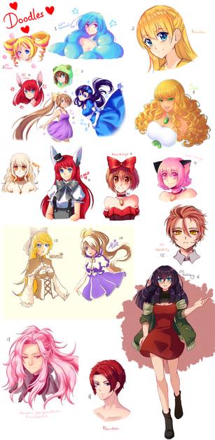 If you've noticed, I draw a lot of girls with white hair. There are two here, with Lilia (skull hairpin) being drawn 4 times and Trisha (whose design has changed a lot, I admit) 3 times. Then is Sullivan (red hair) drawn 3 times. She's my favorite baby but I don't actually draw her a lot, somehow it's just hard for me to do. Who else is there... Katie is there 2 times, then Arya, Morgane, Snow, Cain, Lan, Ume and Zoe I only drew once. Part of me is ashamed of these uninspired names, the other is just like 'meh'.