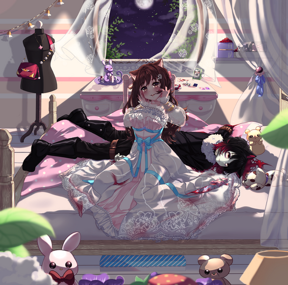 I wanted to draw a lap pillow, but it ended up not being the focus.