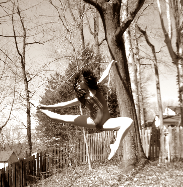 Is this you? You should try to pointe your feet while jumping.