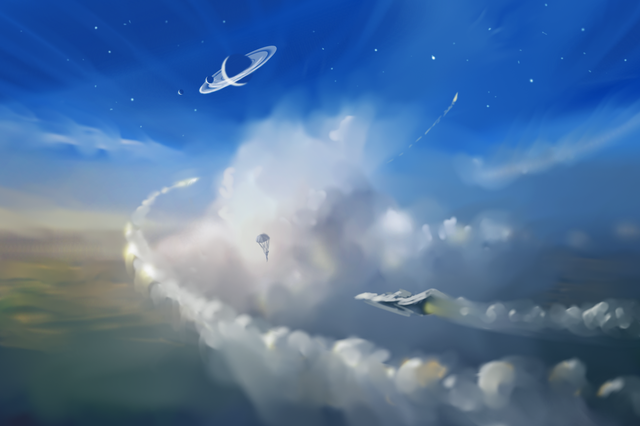 #digitalart #digitalpainting #sky #clouds #flying #rocket #skyscape
