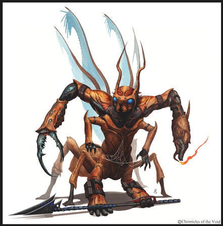 Six feet tall with two snapping mechanical claws, this construct struts on three angular legs. The grasping arms reach far from its body, ready to drag any foes in. At its heart is a globe of absolute blackness, a ball of nothingness two feet in diameter, bracketed by three glowing gems.