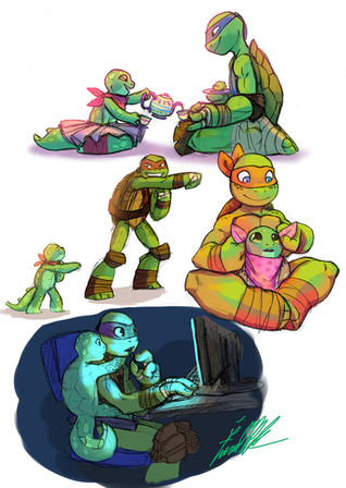 Just a quick pic, based on the trolling Word of God about what to expect in the as yet unconfirmed Season 6.And so I give you the Hamato-mander clan: Raphael, Mona, Gino, Shell and Middletron!
