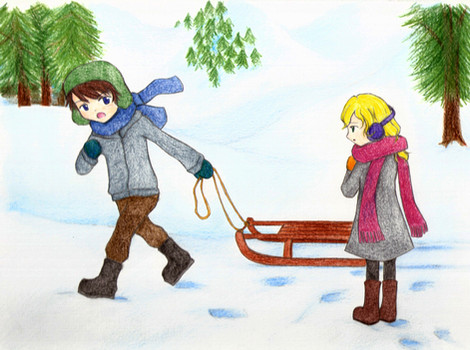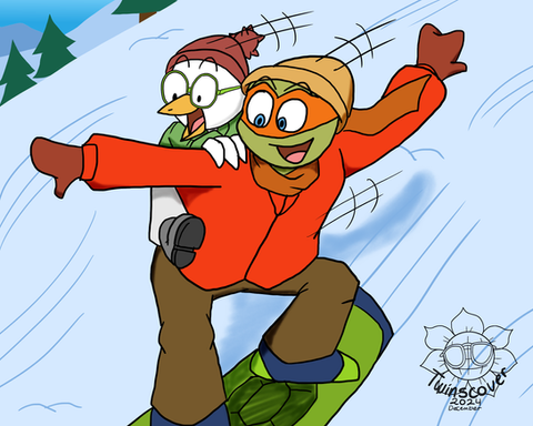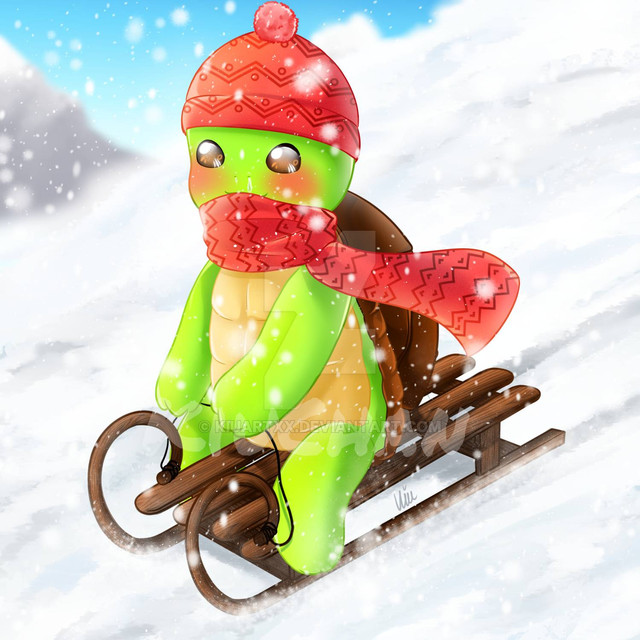 “Sorry my shell!” Raph growled, padding his hands against the snow to give his sled a boost. By the time he made it to the bottom, both his younger brothers were already holding their sleds, readying to head back up the hill.