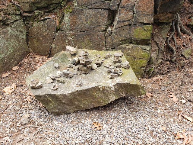 I went back two days later and the pointed stone was gone; three days later the whole thing was gone.... strange that people would take common river stones. But still nice I got the shot.