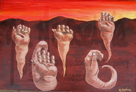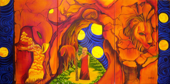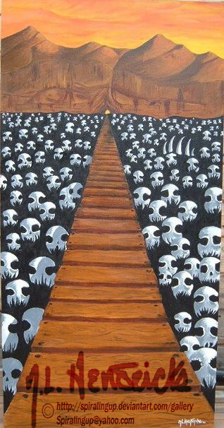 This ....like the title says....is the beginning. The 1st painting i EVER did, as you can tell by the crappy stretching of the canvas haha.Related content