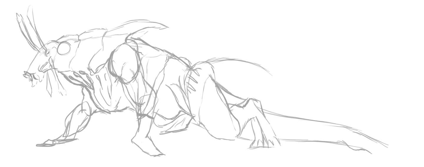 I shouldn't imply that they are less "interesting", however most existing large animals have the very familiar tetrapod body design. I was wondering if a creature with such an "unfamiliar" head, also had a similarly "unfamiliar" body-plan.