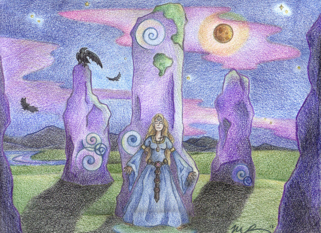 Oh wow! This is beautiful! I love the designs on the stones! Th e raven/crow is a nice touch as well :3