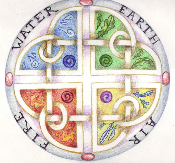 Colored Pencils on textured PaperI tried to capture the essence of each element is simple circular mandala. This is just the sketch for the bigger and more detailed Mandala of each of the elements.