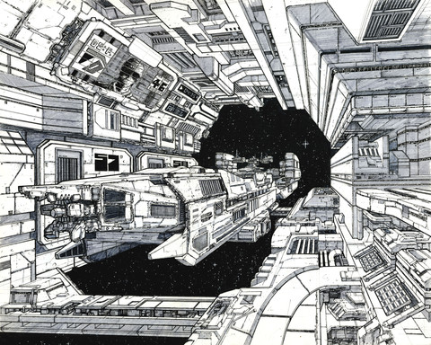 asked me if I had a spaceport drawing so I'm showing this one that was in my sketchbook. It's an unfinished piece that I never went back to. I do have another drawing of a ship docking that I'll try to upload in the future.Related content