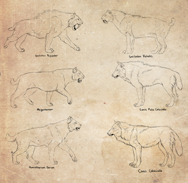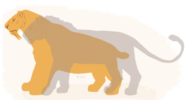 Just messing around with the size differences between the two. Measured in shoulder height. Also practiced some big cat anatomy...Average Saber- 46 in - 48 in