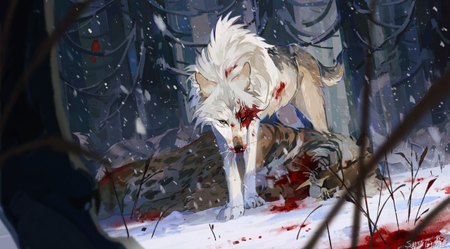 #battle #fight #night #shadows #snow #tiger #tigers #winter #wolf #wolves #woods #wolfvstiger #snowyforest #thesodasmuggler