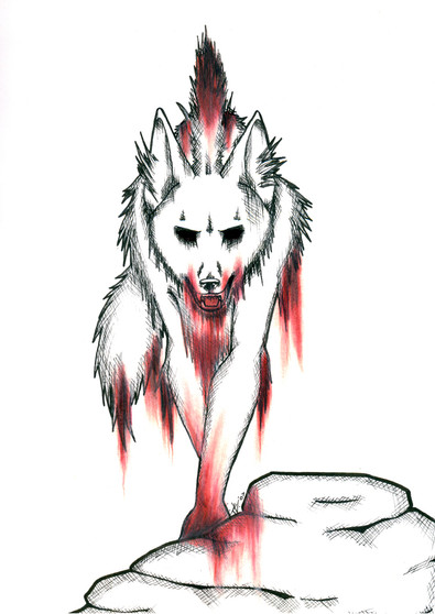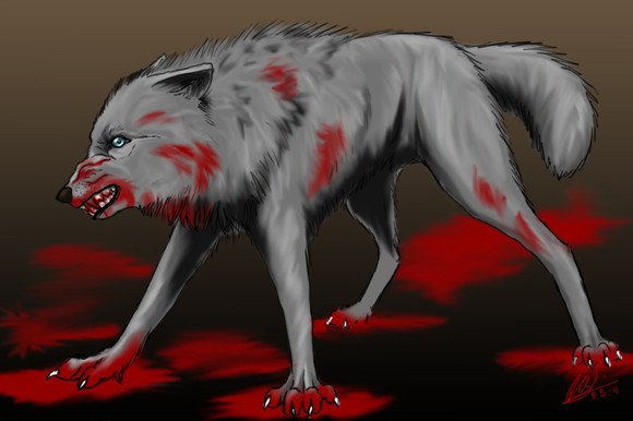 Cool wolf, cool blood and also cool background.