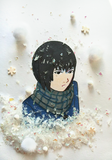 #beautiful #blackandwhite #digitalart #digitalmedia #flower #girl #gray #kimono #portrait #semirealistic #snow #semirealisticanime