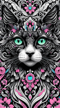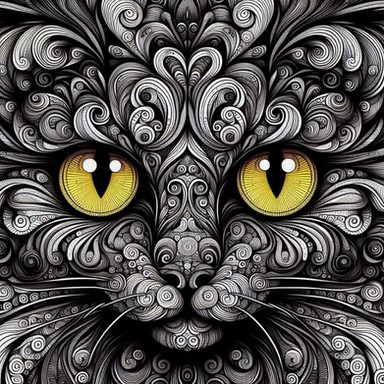 #cat #digitalart #gray #graycat #green #greeneyes #grey #swirls #yellow #yelloweyes #abstractart #digitaldrawing #monochrome #petportrait #procreate #symmetrical #symmetry #procreateart