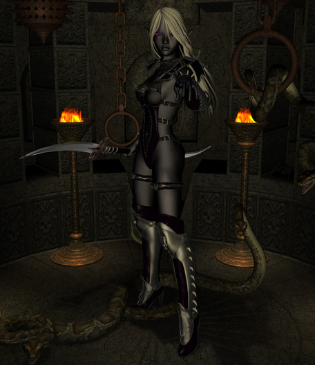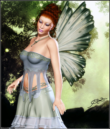ok imma not great doin faeries in the 3d realm of art... when i used to draw on paper i could get it to look right... but for some reason i cant get faery scenes lookin just like i want them too in this media... grrr... always missing somethin and i suck at modelin... LOL... all i can do is texture things decently...anyhow... this one i actually did before the Fire Mistress image... its V4 using the Thorne/Sarsa character found at Daz3d... i kinda likey this character they made...
