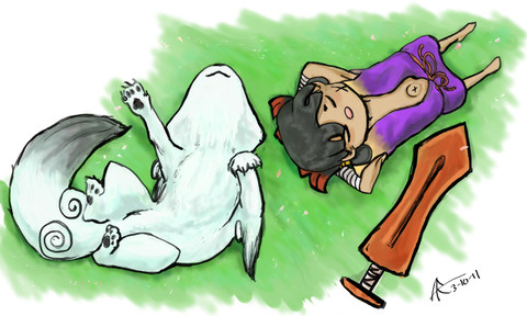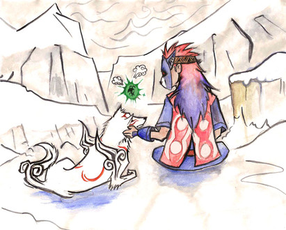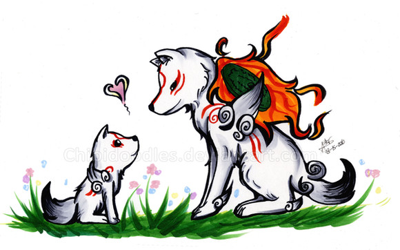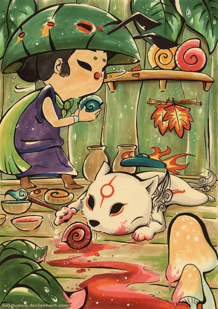 Chibiterasu and Kuninushi painting Amaterasu.Watercolor done for an Okamiden art contest over at Capcom-Unity .