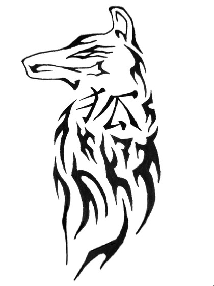 Well how I start my tribal animals is to start with a silhouette in pencil then add in key features such as eyes, nose, line of mouth, and the rest of the ears. I leave alot of detail out as the tribal shapes add so much detail on their own if it was a complex starter drawing it's going to look way over crowded. After that I concentrate on adding tribal shapes that run along or as close to the original lines as possible. I make these bold shapes as they are the animals defining features as I want people to be able to recognize this. Then I choose whether I want my shapes to intertwine, defining features are always on top. After comes the fun part playing with shapes that fit in between. The shapes that fit in between I try and use to hint at tufts of fur, direction of fur or a sense of movement in the animal.