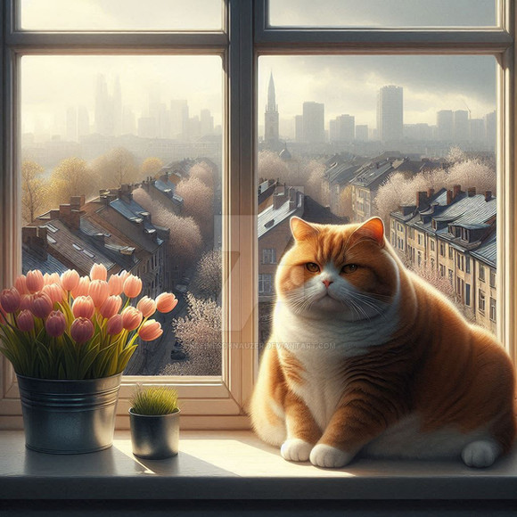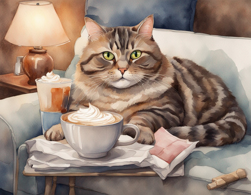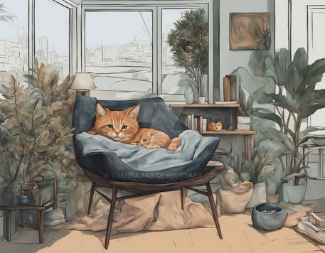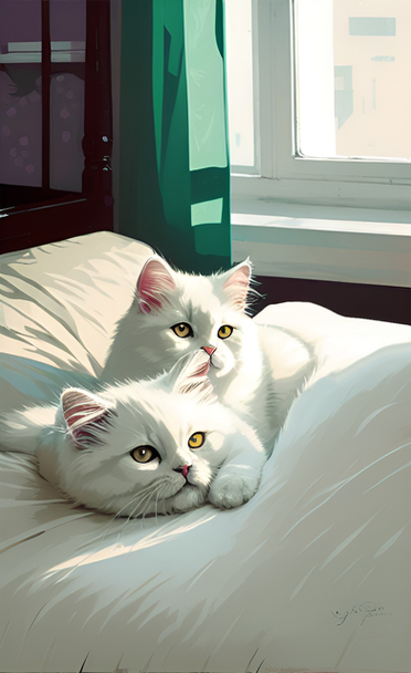 Cats need to be pampered.AI art with post processing.