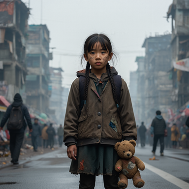#ai #beautiful #chernobyl #desolate #dystopia #future #girl #hunger #hungry #outdoors #poor #poverty #pretty #sad #school #teddybear #young #aiart #outside