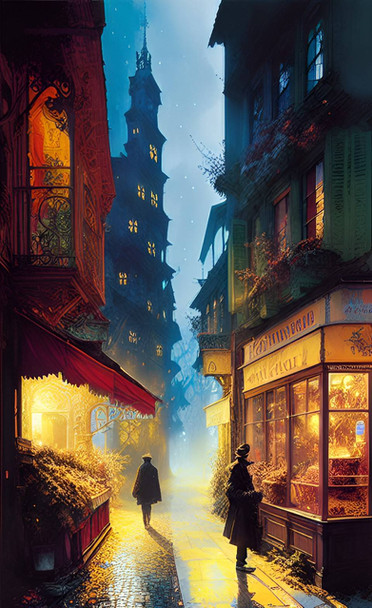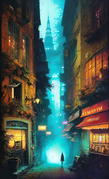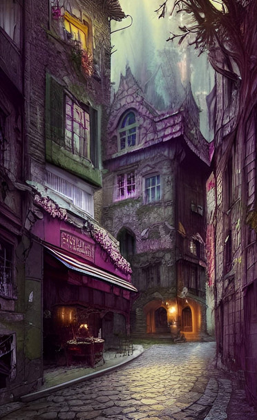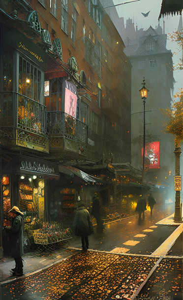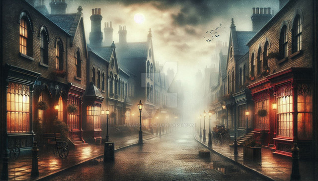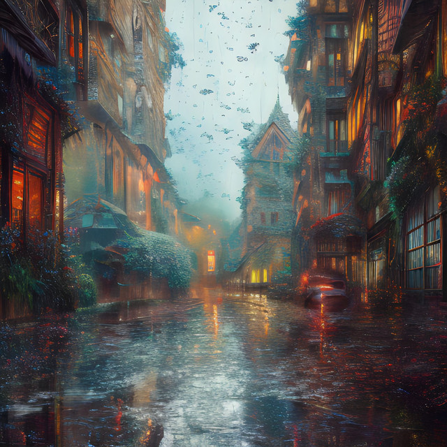 #ai #alley #beautiful #buildings #cities #city #cityscape #english #fantasy #fantasyartwork #fiction #night #rain #shops #aiart #old