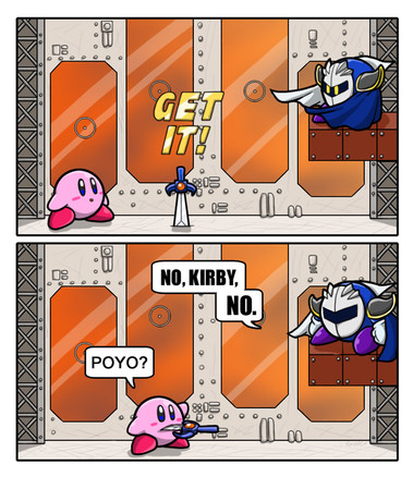 This is actually an appropriate summation of Meta Knight's roles in the Kirby games