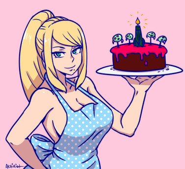 Cute, but I think it'll be more realistic if the cookies were burnt. I don't think samus is a good cook in a sense. How is an alien blasting babe going to find time to cook? It'll look cuter if her cookies were burnt and she has some cream on her face from the mess ^^