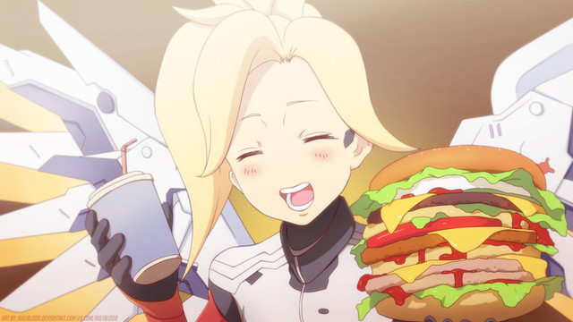 oooooooh itΒ΄s a coincident. I just wanted to draw a burger and Mercy is one of my favourite characters. Your burger beats mine tho. good job.