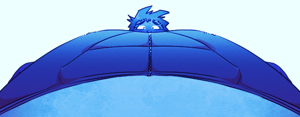 That's a lot of groin he's balancing on! Oof, that's gotta be uncomfortable for him...