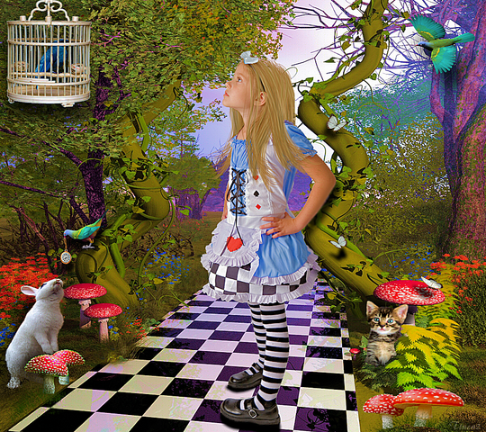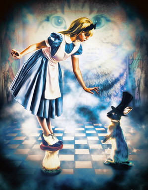 The image is based on these lyrics. "White Rabbit by Jefferson Airplane"